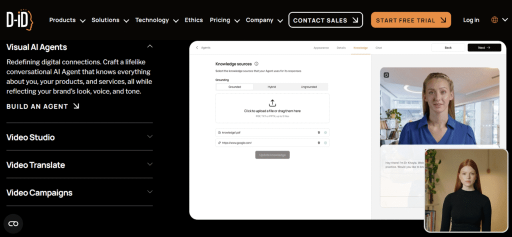 - Avatar Library & Custom Personas: Offers a selection of ready-made avatars plus the option to craft a unique character that matches your brand’s tone, age, and style.