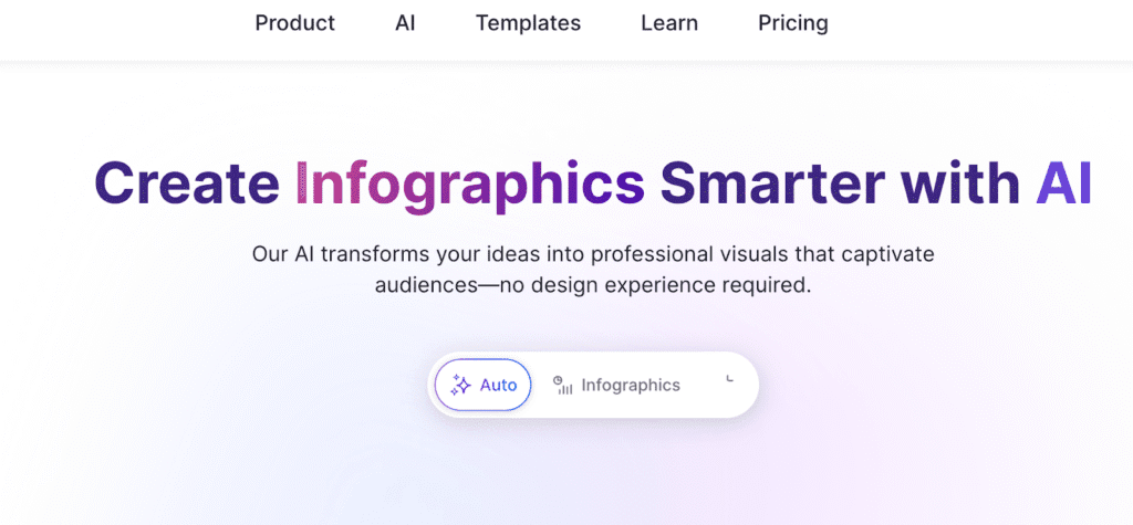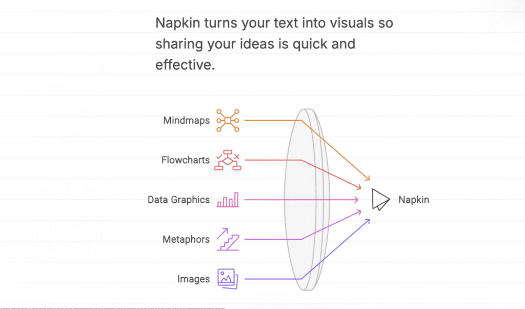 | Napkin.ai | Speed-first visuals | Prompt-based generation | Quick infographics from text |