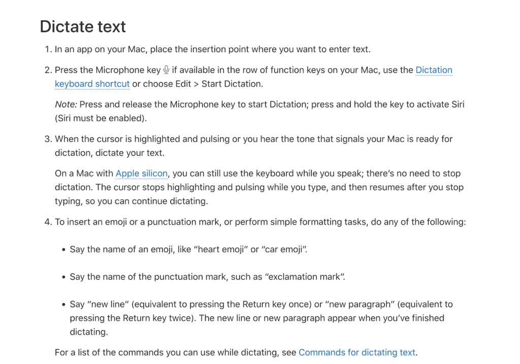 If you’re on an Apple device and want reliable, no-cost dictation that “just works,” Apple Dictation is one of the easiest ways to turn your voice into text. It’s built into iOS and macOS, works offline for short dictations, and integrates seamlessly with your apps and keyboard shortcuts.