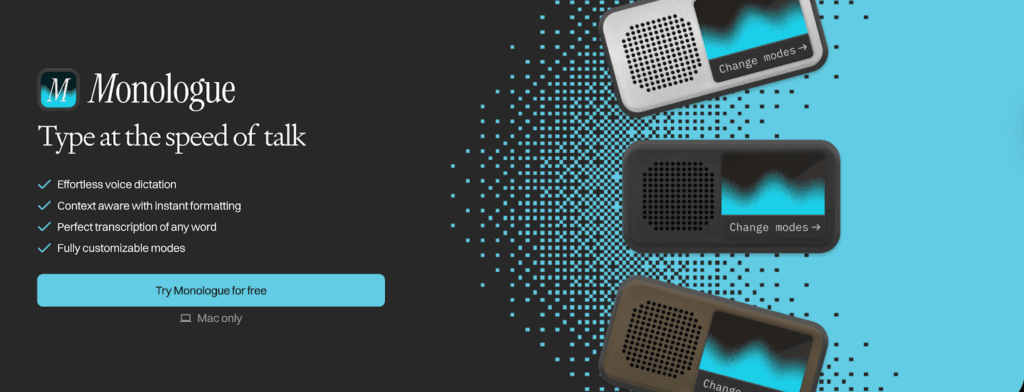 If what you want isn’t just speech-to-text but a tool that actually understands what you’re trying to say and how you work, Monologue is one of the smartest AI dictation apps in 2026. It goes beyond straight transcription to capture the meaning, context and structure of your voice, making your dictations feel much closer to polished writing.
