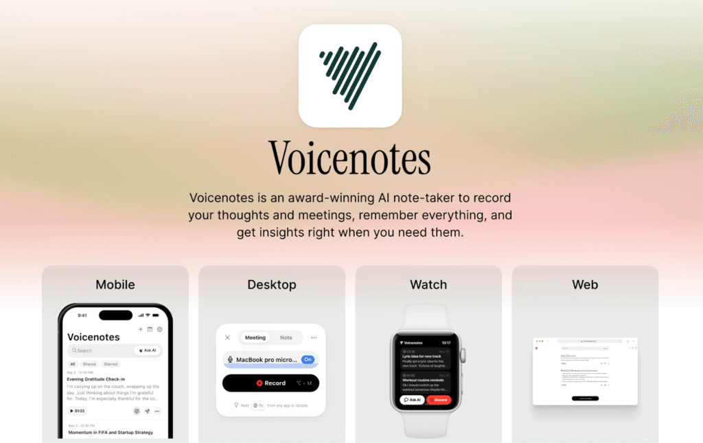 - Quick Export & Sharing: Voicenotes makes it easy to export or share your content.
