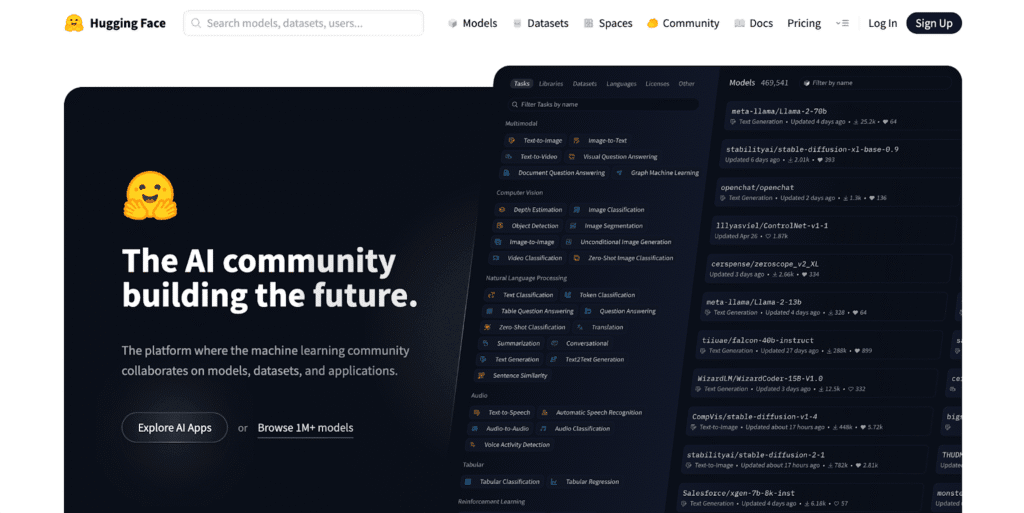 - Wide Model Library: Access to many pre-built AI models made by both Hugging Face and its community.