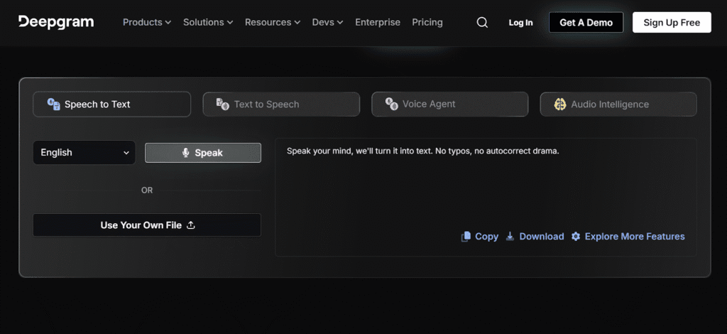 | Deepgram | High-accuracy real-time speech recognition for developers | Instant speech-to-text, background noise handling, and keyword spotting |