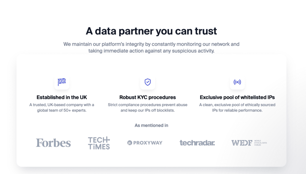 - Wide Proxy Types: Offers static residential, rotating residential, datacenter, static & rotating mobile, and ISP-proxies.