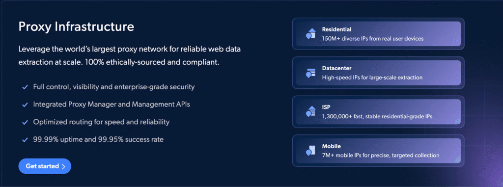 - Diverse Proxy Types: Offers residential, datacenter, ISP, and mobile proxies.