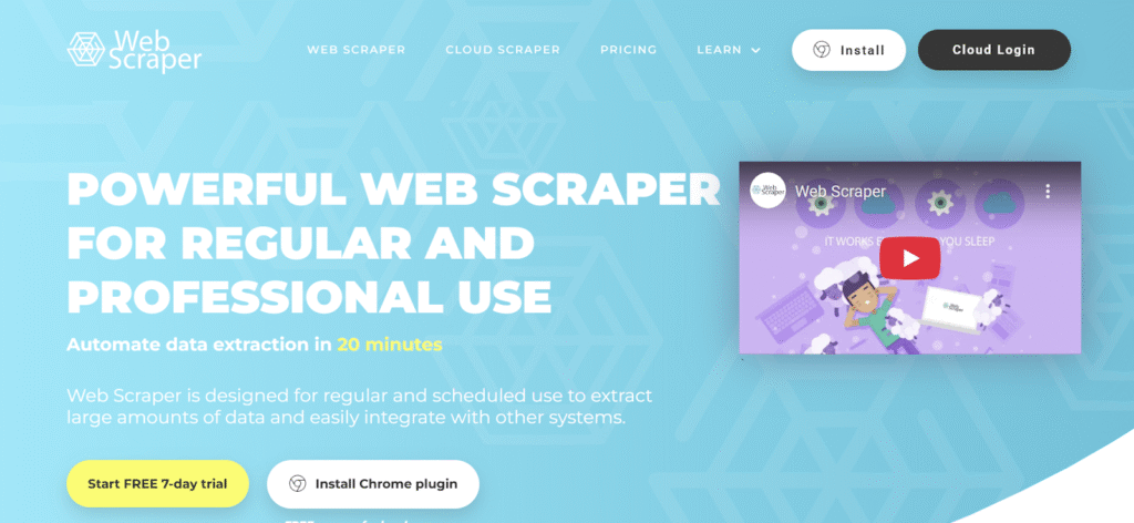 WebScraper.io offers a browser-based platform to build and deploy web scrapers visually. It is popular among beginners and intermediate users for its straightforward interface and cloud running capabilities. The tool supports data extraction from multi-level and JavaScript-heavy sites and provides options for scheduling and cloud hosting. It suits freelancers, small businesses, and researchers.