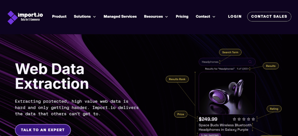 Import.io is a powerful no-code web data integration platform aimed at enterprises and businesses. It offers visual tools to build data extractors along with automated workflows, data cleansing, and transformation features. Import.io supports a wide range of complex websites and provides secure cloud storage and API access. It fits users needing robust data collection coupled with enterprise-grade reliability.
