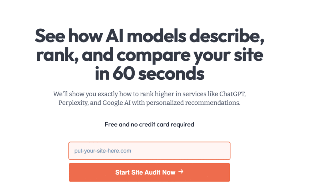 - Competitor Benchmarking: You can compare your brand’s AI visibility against competitors, and use AI-readiness audits to identify areas to improve.