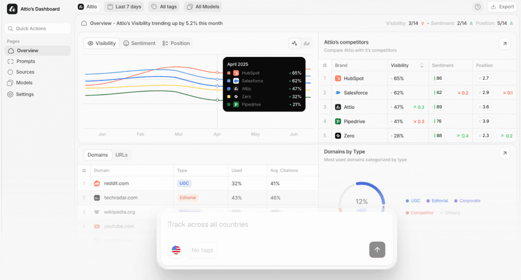 - Prompt-Based Tracking: You can monitor a curated set of prompts across multiple AI engines.