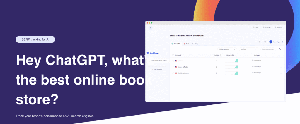 If you want a tool dedicated to AI-search visibility, not traditional SERPs, RankRaven does exactly that. It runs your prompts daily, checks AI model answers, and tracks whether your brand, keywords or competitor names show up. This makes it ideal for content/marketing teams who want consistent, automated monitoring of how they appear inside AI-powered search/answer engines.
