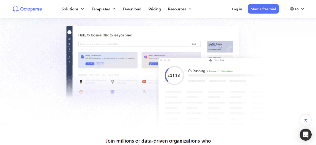 Octoparse is a widely used visual web scraping software that is designed for both beginners and tech-savvy users. It provides a desktop client and cloud platform to build scraping workflows without coding via an easy-to-use point-and-click interface. Octoparse handles anti-bot mechanisms with built-in proxies and offers scheduling, cloud extraction, and multi-format exports, enabling efficient Reddit data extraction at scale.