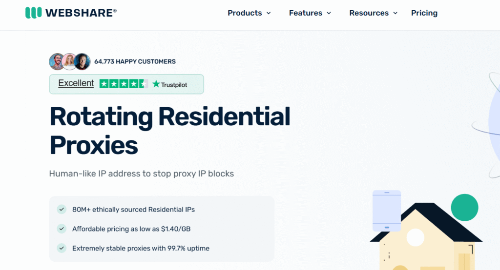 Webshare offers easy-to-use, low cost rotating proxies that are best suited for small businesses and individual users that need a reliable level of anonymity and data access. Its simple setup and flexible plans cover a variety of use cases like data management, web scraping, e-commerce product analysis, market research and social media management.