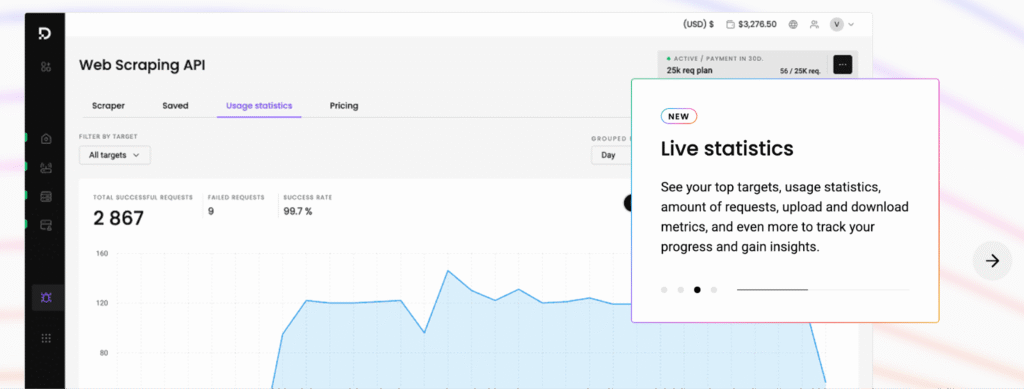 Decodo has evolved into a comprehensive data access and automation platform, maintaining its reputation for providing high-quality, affordable rotating proxies. Their services are designed for seamless integration with various scraping tools and automation platforms, ensuring efficient data collection processes. Decodo’s user-friendly interface, combined with flexible session controls and robust support, makes it a reliable choice.