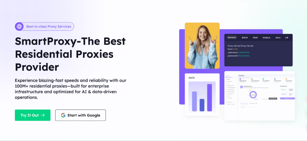 | SmartProxy | Auto rotation, sticky sessions | Country, city, ASN | Market research, ad verification, price monitoring |