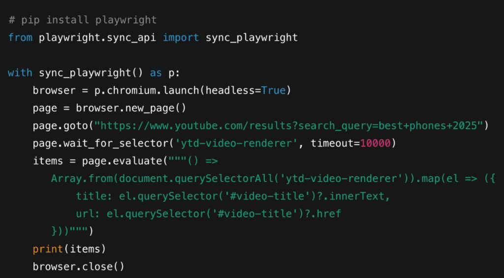 Use Playwright when you need pixel-perfect renders, dynamic badges, or to interact with the page as a user. It’s the go-to when the reliability of visible content matters more than cost.