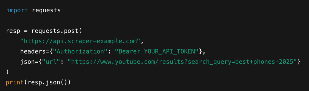 If you’re scraping YouTube SERPs at scale or need rock-solid reliability, a managed web scraping API is often the easiest and safest choice. Instead of juggling proxies, solving CAPTCHAs, spoofing fingerprints, or running fleets of browsers, these services let you request a YouTube URL and instantly receive clean HTML or structured JSON. Everything, including proxy rotation, device emulation, JavaScript rendering, retries, and user-agent management, is handled for you behind the scenes.