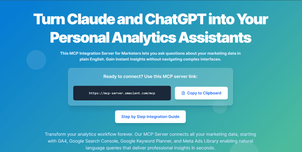 Smacient MCP for ClaudeAI IntegrationNoAI-powered analysis of scraped marketing dataWorks directly with extracted dataContact for pricing